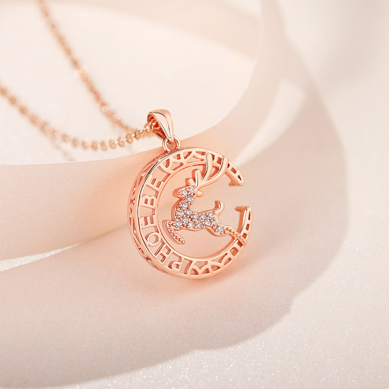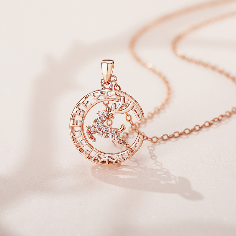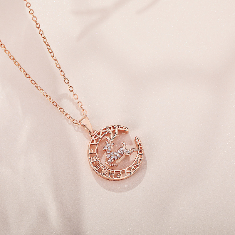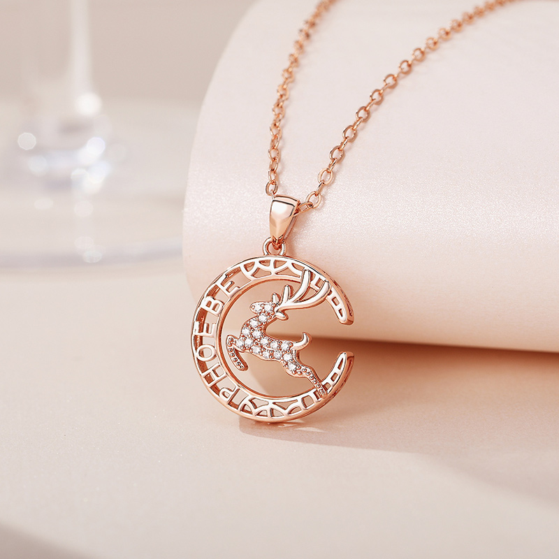 Delicately designed,our elk necklace makes a perfect way to express love by the pendant,which can be customized with an engraving words of your cherished.The exquisite christmas elk with moon necklace creates a strong festive atmosphere. These necklace are not only for christmas day, but also for daily wear.